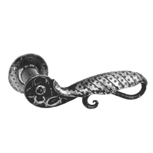 Set manere de poarta 125x70mm cu rozete D.50mm vopsite negru cu antichizare argento, produs lucrat deosebit de la Arteferro Italia.