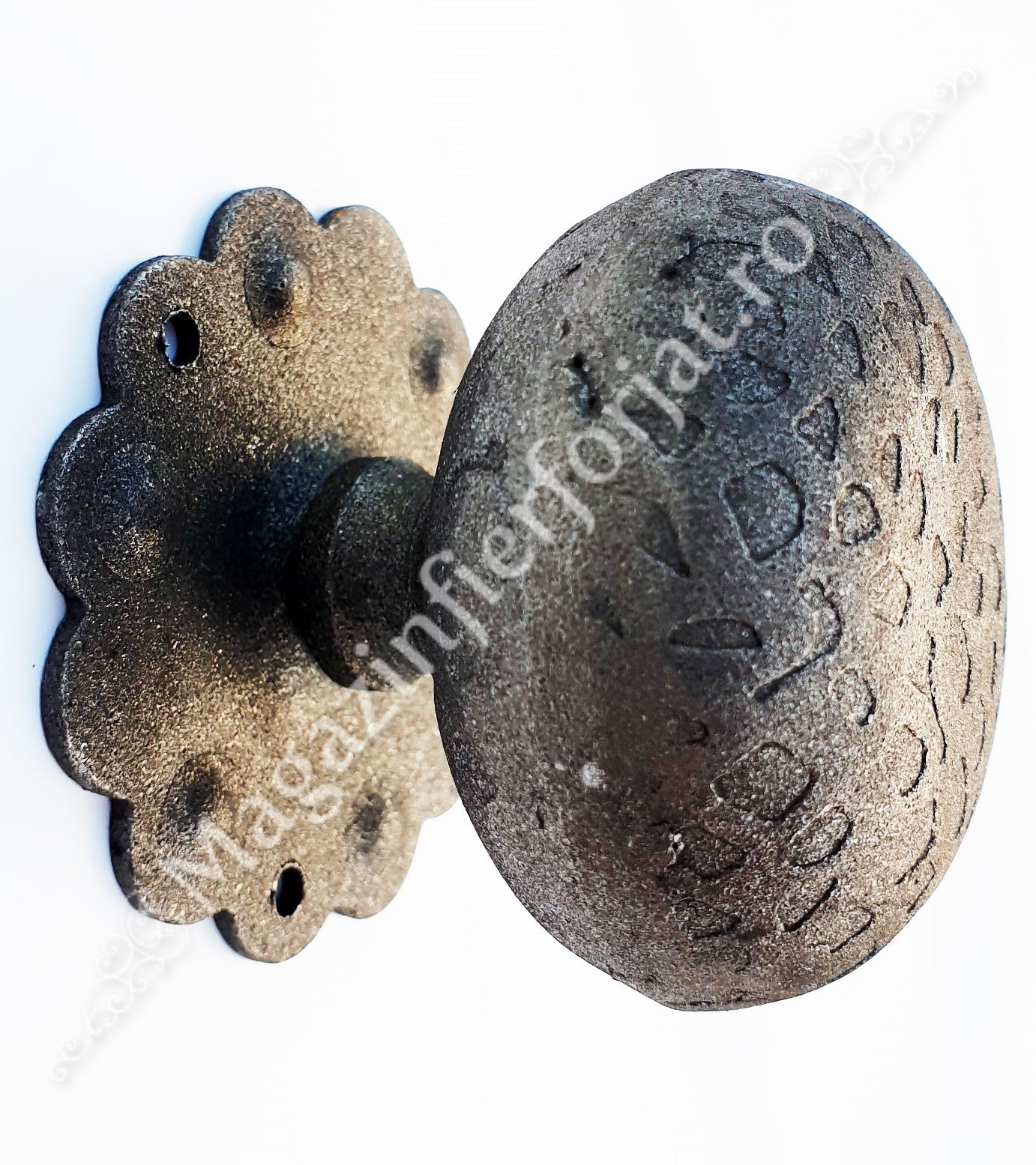 63.002 Maner fix fier forjat Eliptic D.60mm cu placa floare D.65mm cu 3 gauri, H.55mm