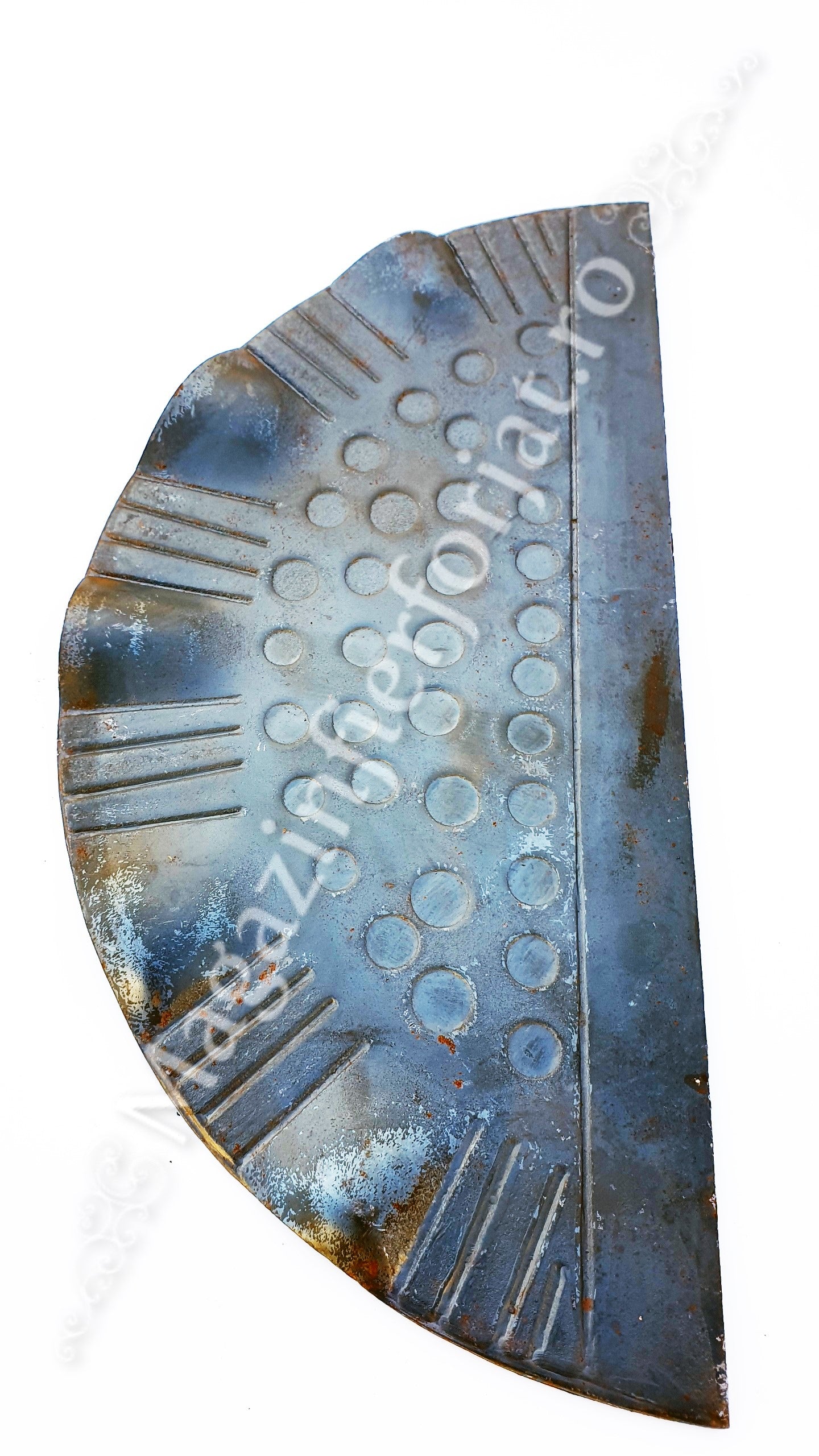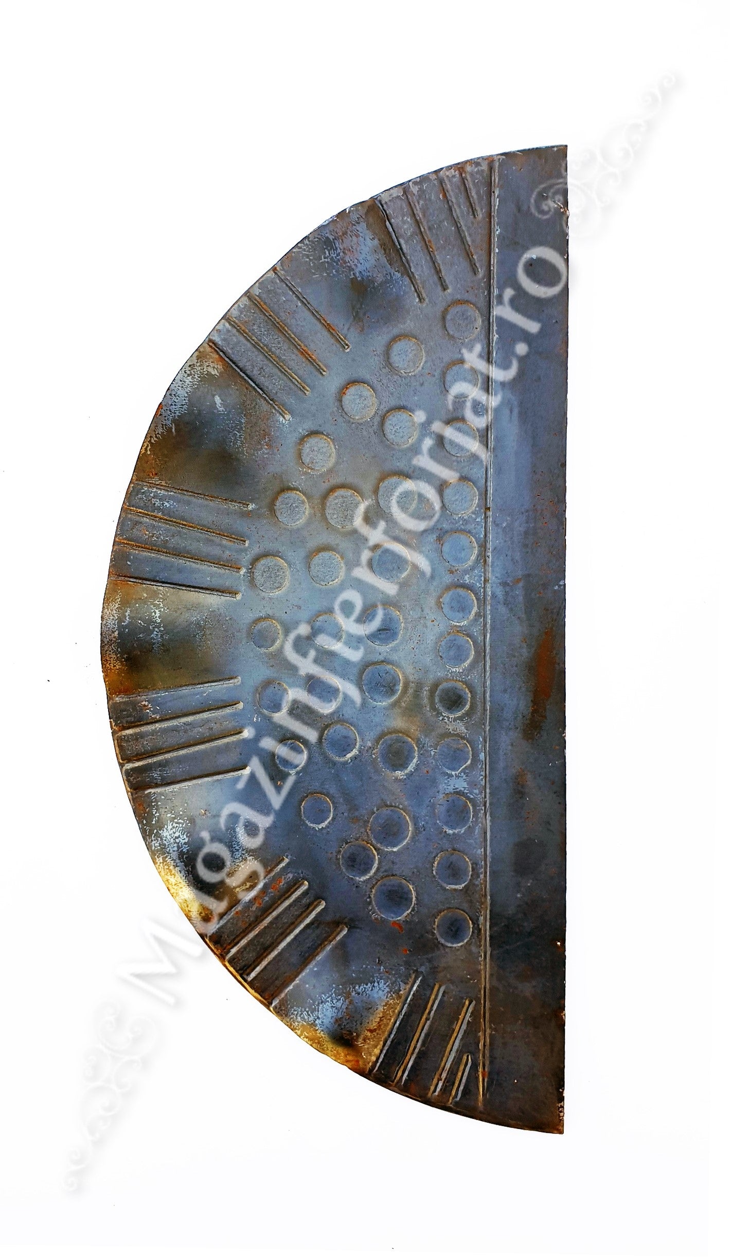 63.101 Placa de mascare pentru poarta 275x130mm din tabla forjata de 3mm in forma de Semicerc este la precomandă și va fi disponibil de îndată ce revine în stoc.