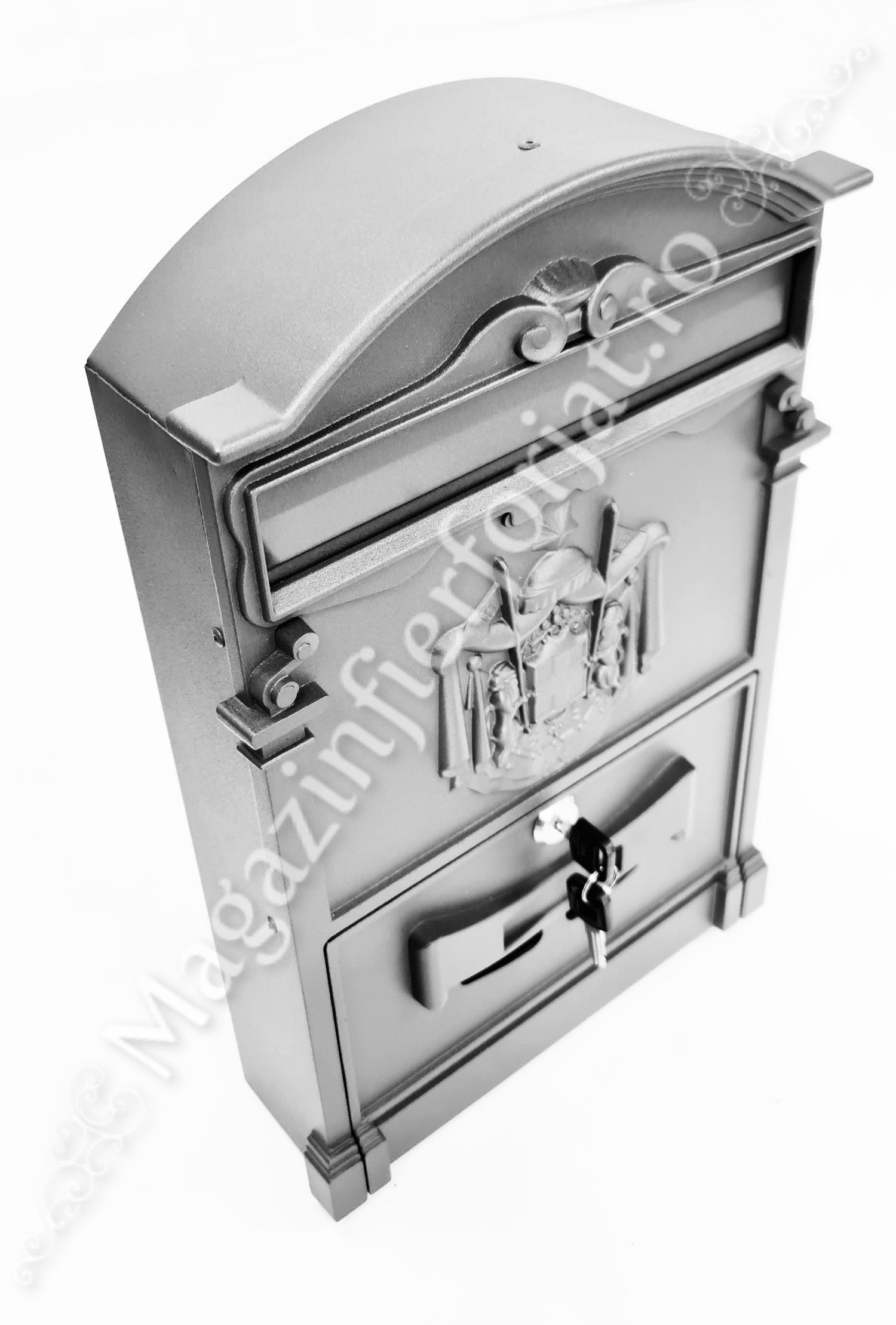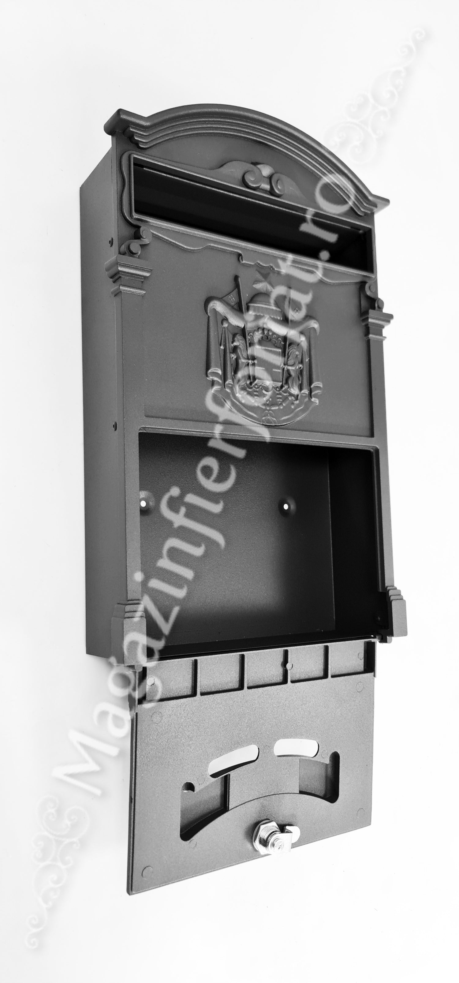 Cutie postala cu basorelief, culoare GRI-ANTRACIT-MAT H.405mm x L.253mm, fabricata din otel si aluminiu