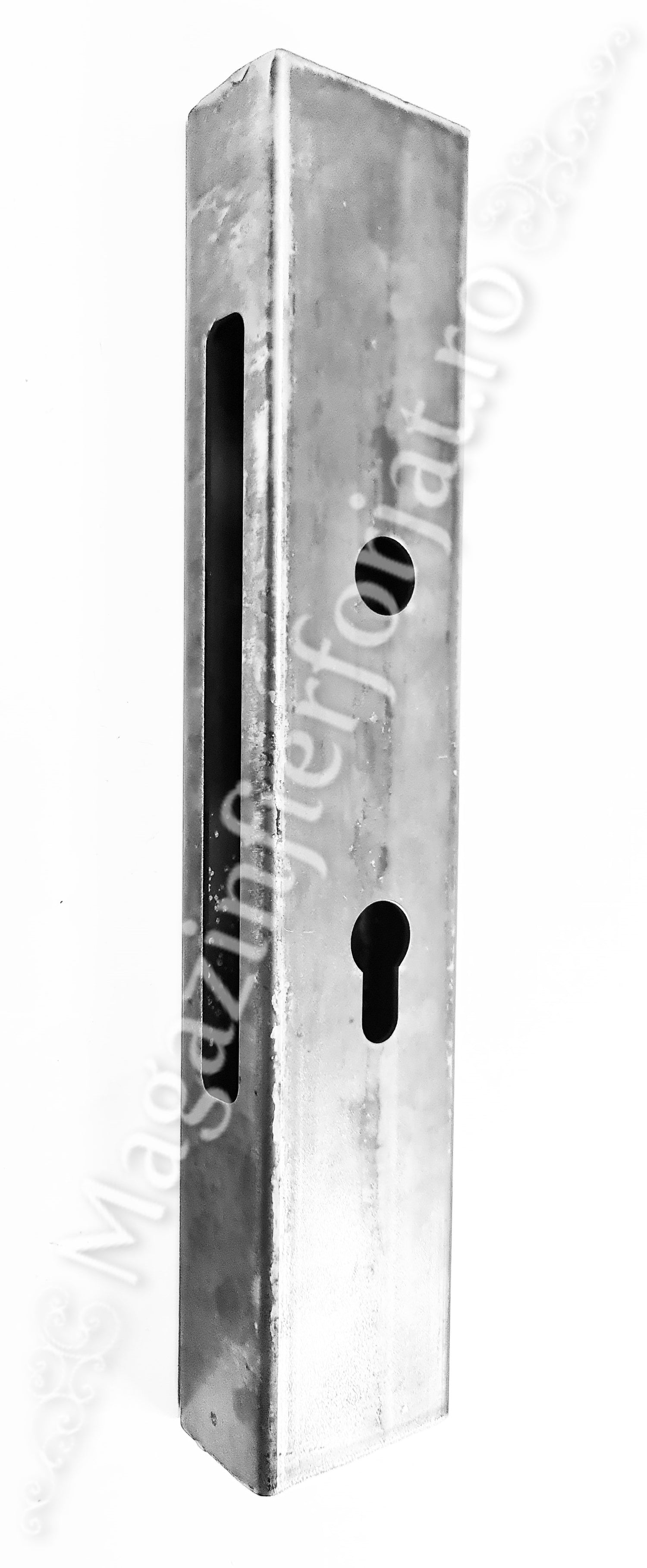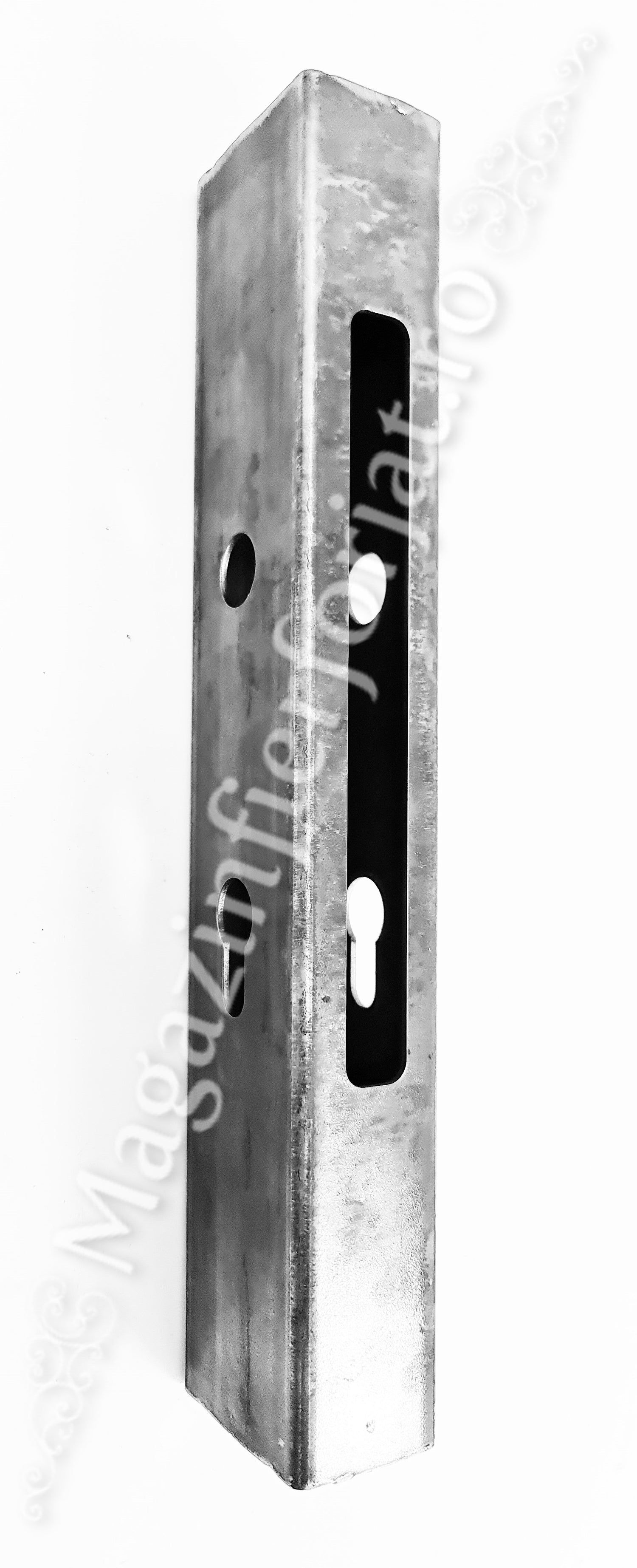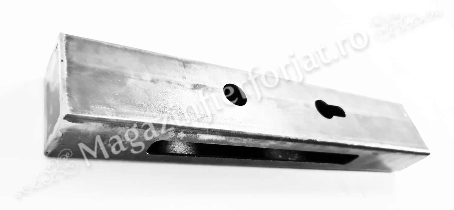 Caseta cu decupaje Broasca/Yala 35/85mm H.320mm din profil 60x40x2mm neted, cu o distanta intre gauri de 85mm si 32.5mm de la margine. Caseta poate fi inserata prin sudura, in teava de 60x40mm / 40x40mm / 40x30mm / 30x30mm / 30x20mm sau chiar teava rotunda, produs lucrat deosebit si unic marca UNIVERTIS.
