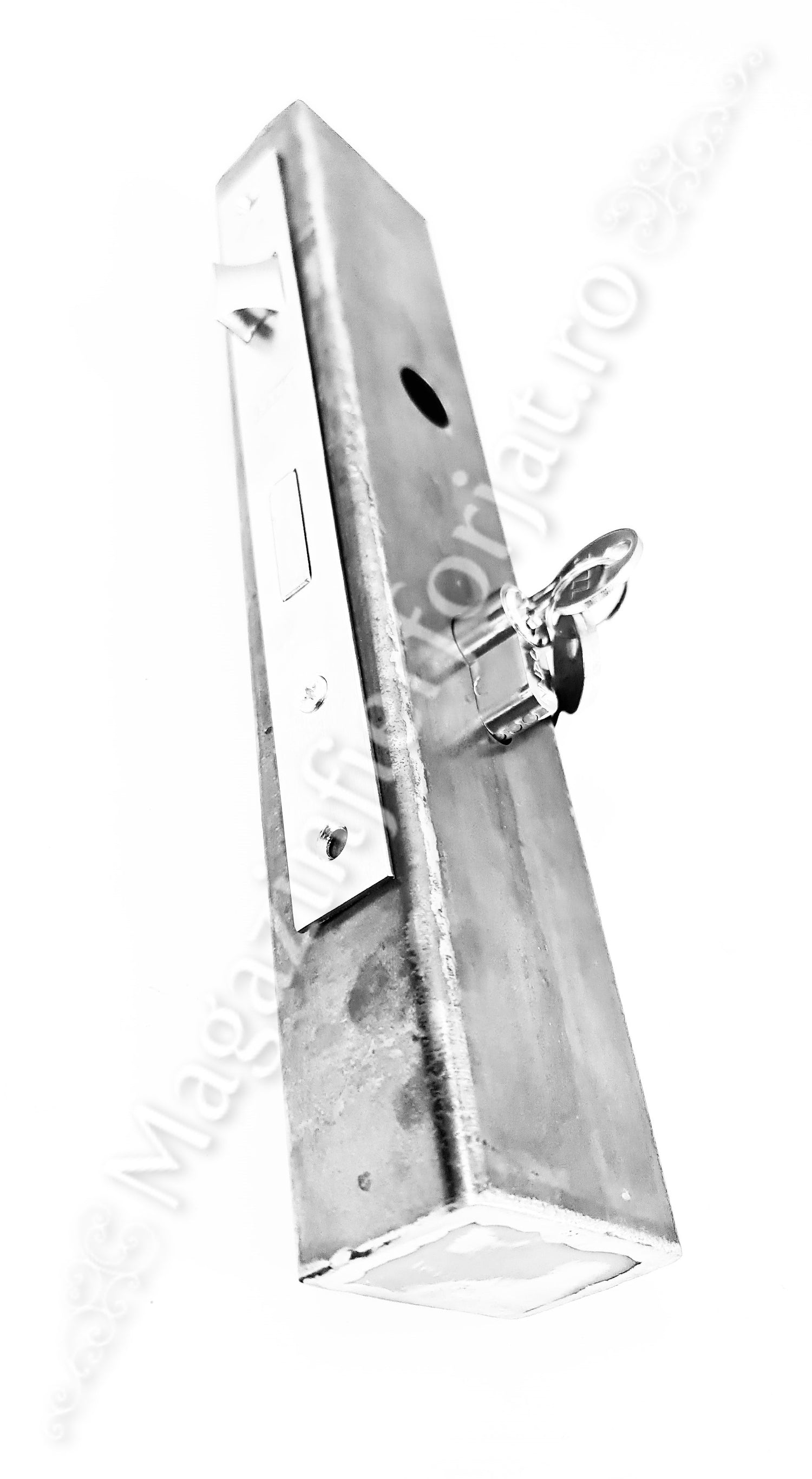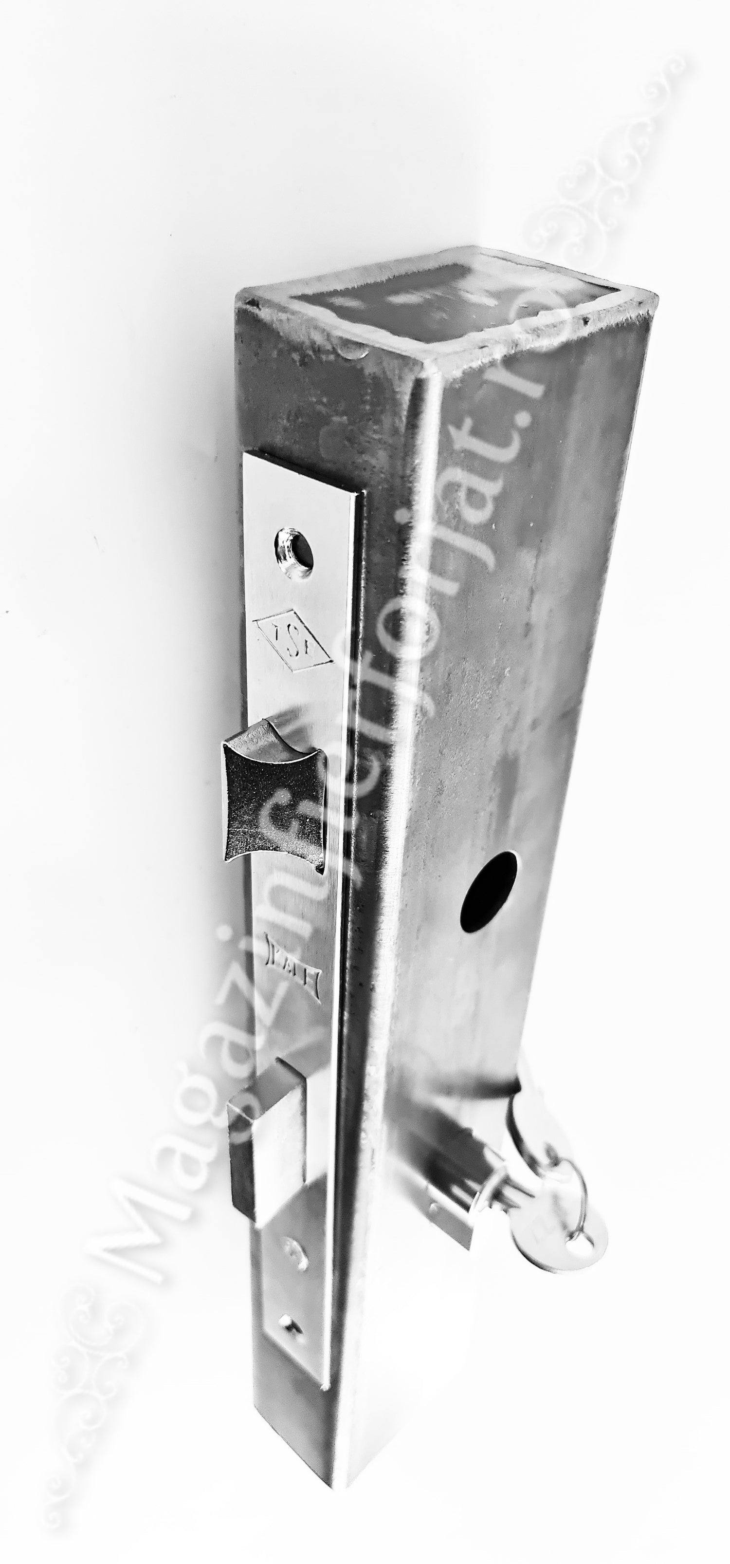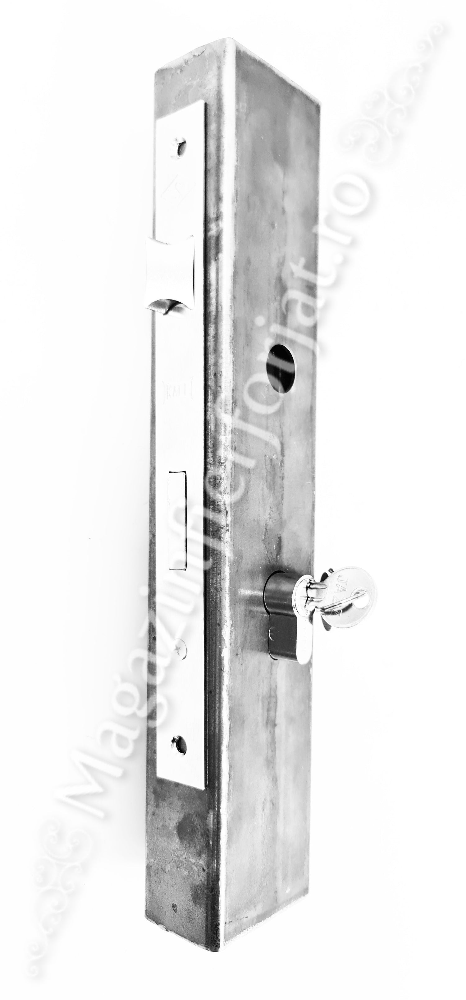 Caseta cu decupaje Broasca/Yala 35/85mm H.320mm din profil 60x40x2mm neted, cu o distanta intre gauri de 85mm si 32.5mm de la margine. Caseta poate fi inserata prin sudura, in teava de 60x40mm / 40x40mm / 40x30mm / 30x30mm / 30x20mm sau chiar teava rotunda, produs lucrat deosebit si unic marca UNIVERTIS.