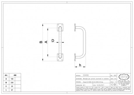 Maner cu 2 CURBE pentru PORTI / USI batante sau culisante, 180mm, din otel vopsit negru, IBFM Italia