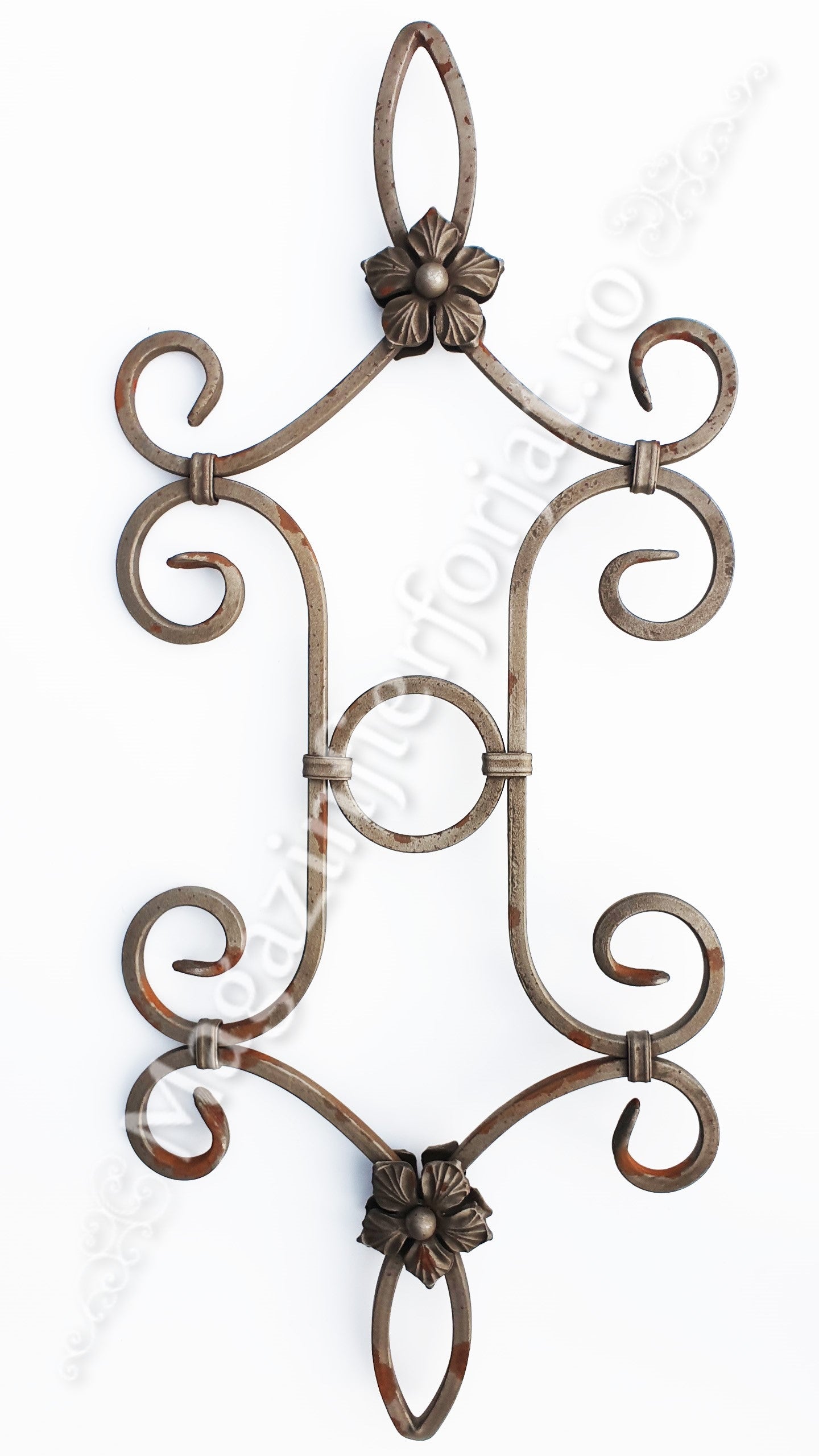 13.030 Medalion fier forjat cu C-uri, flori si cerc, H.900mm din 12x12mm neted este la precomandă și va fi disponibil de îndată ce revine în stoc.