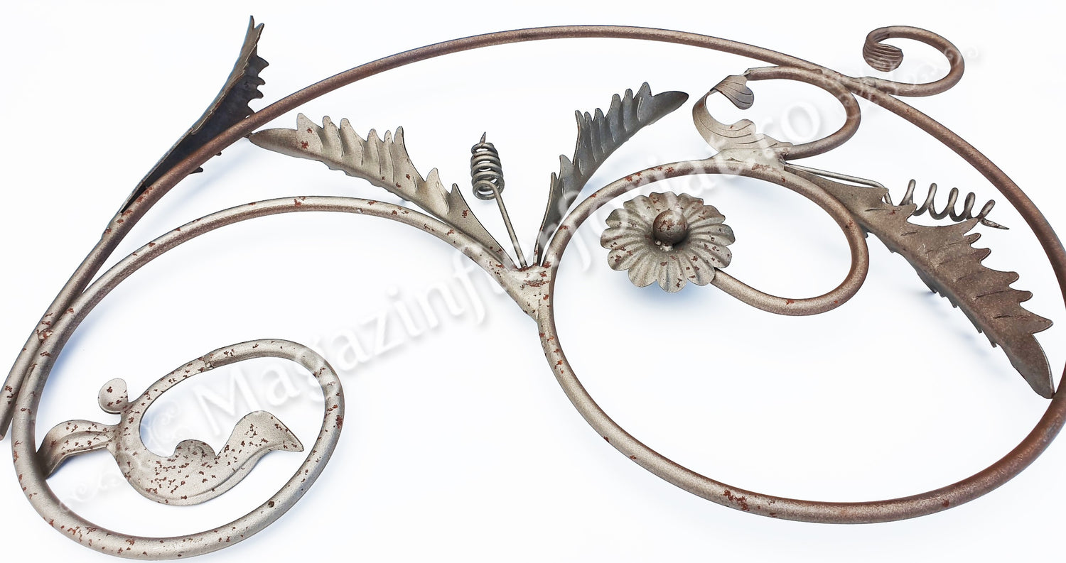 Panou floral din fier forjat cu frunze si flori 750x550mm executat din otel rotund neted D.12mm, cu montaj pe partea STÂNGĂ