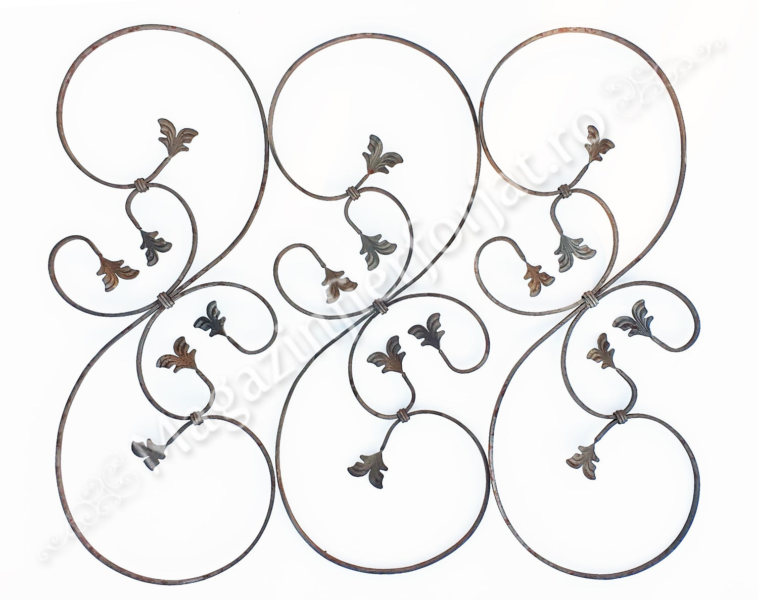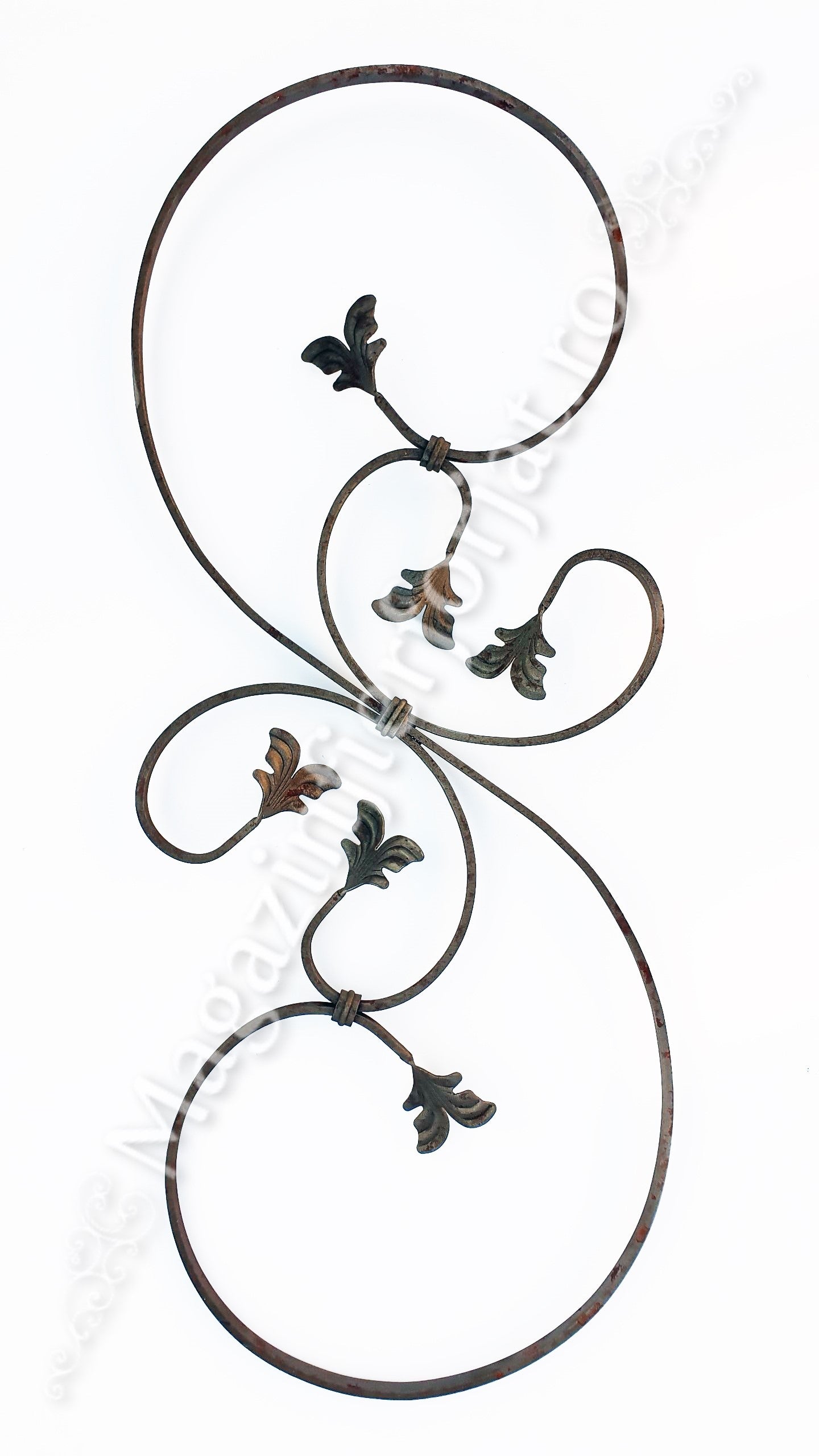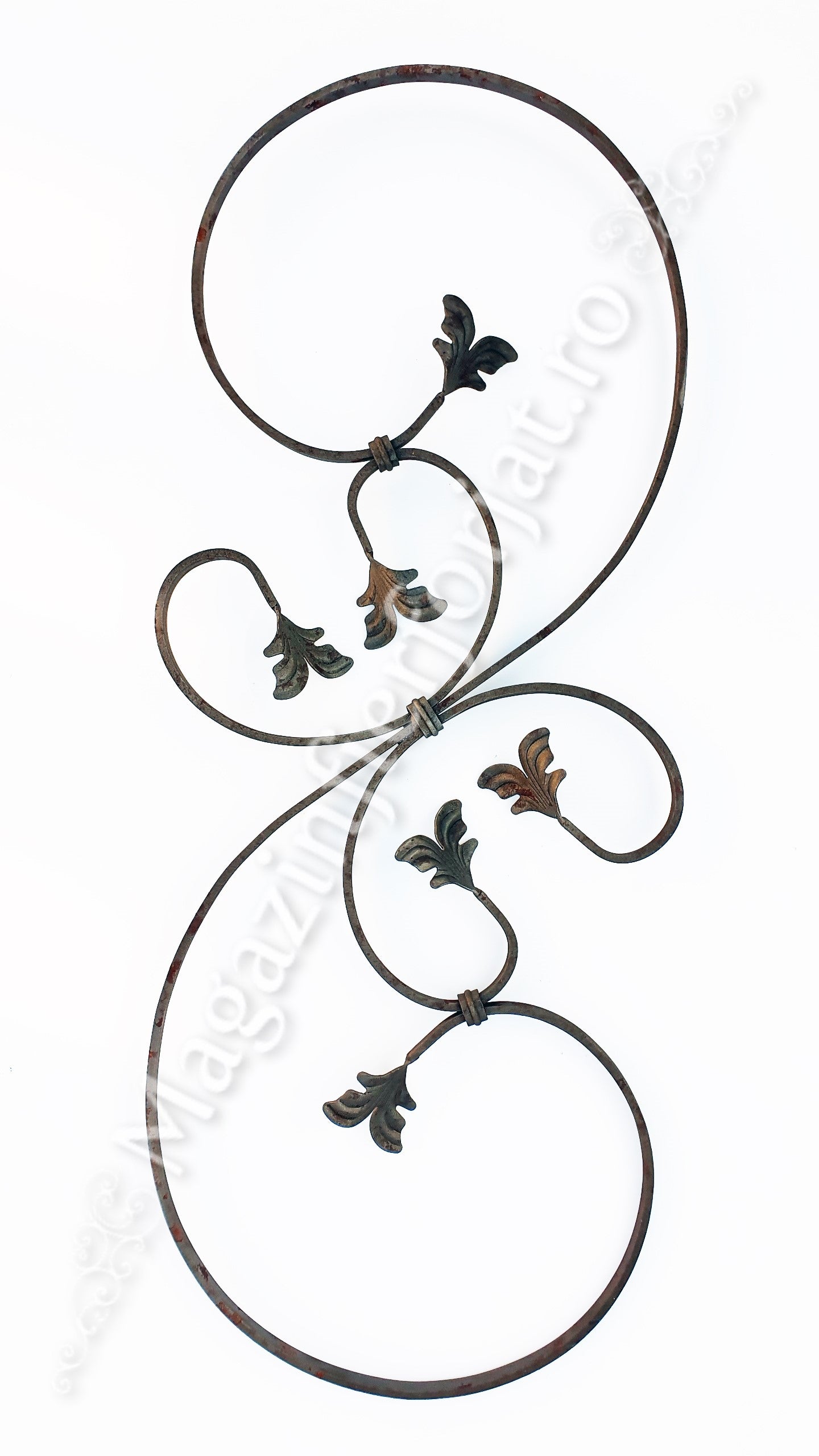 Panou in forma de "S" 860x350mm din platband 12x6mm NETED, cu frunze din tabla ambutisata cu grosime de 2mm (materialul NU este amprentat)
