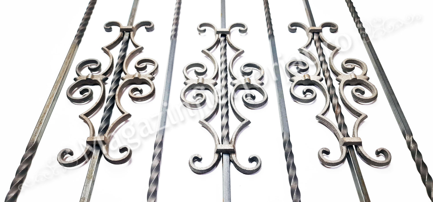 Balustru turnat din aliaj fier-fonta sudabila, model CLASIC, cu H.420mm si L.180mm, cu scobitura la mijloc ce permite plasarea ornamentului pe o bara de pana la 14.5x14.5mm.