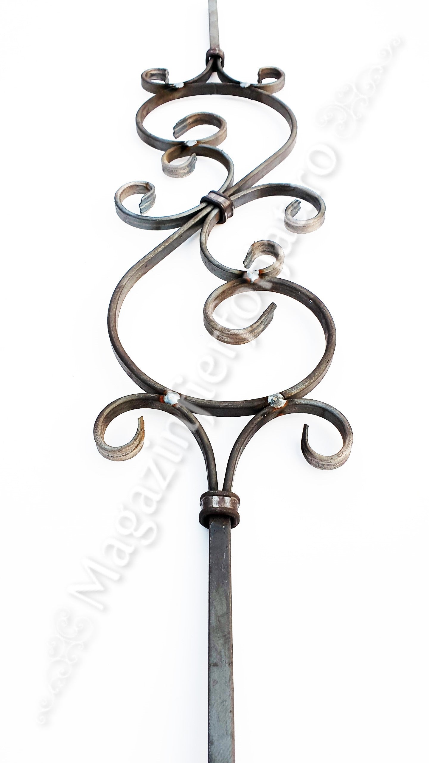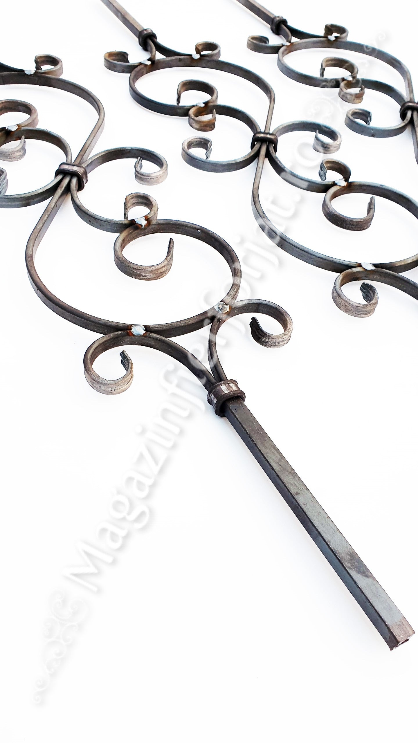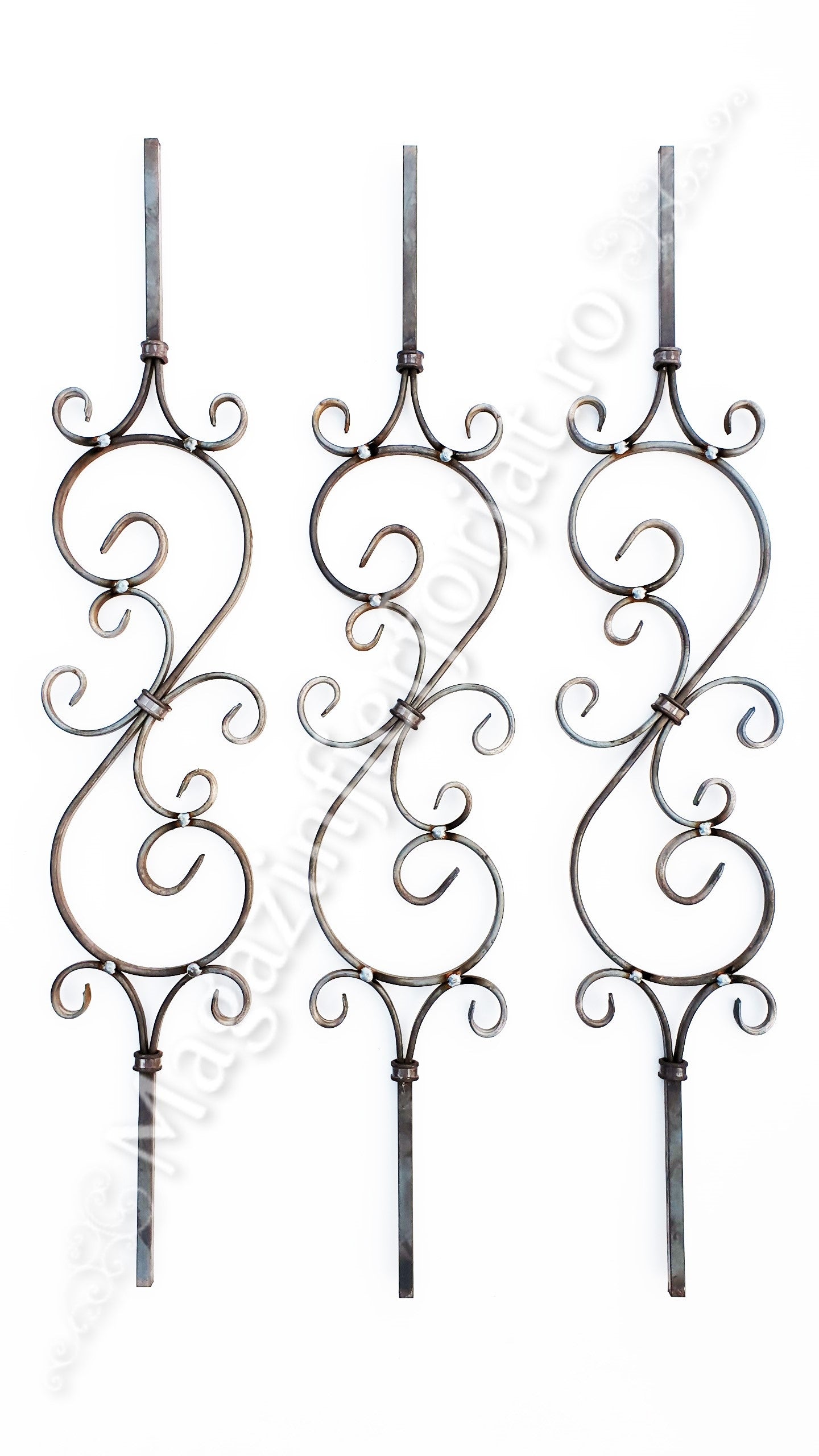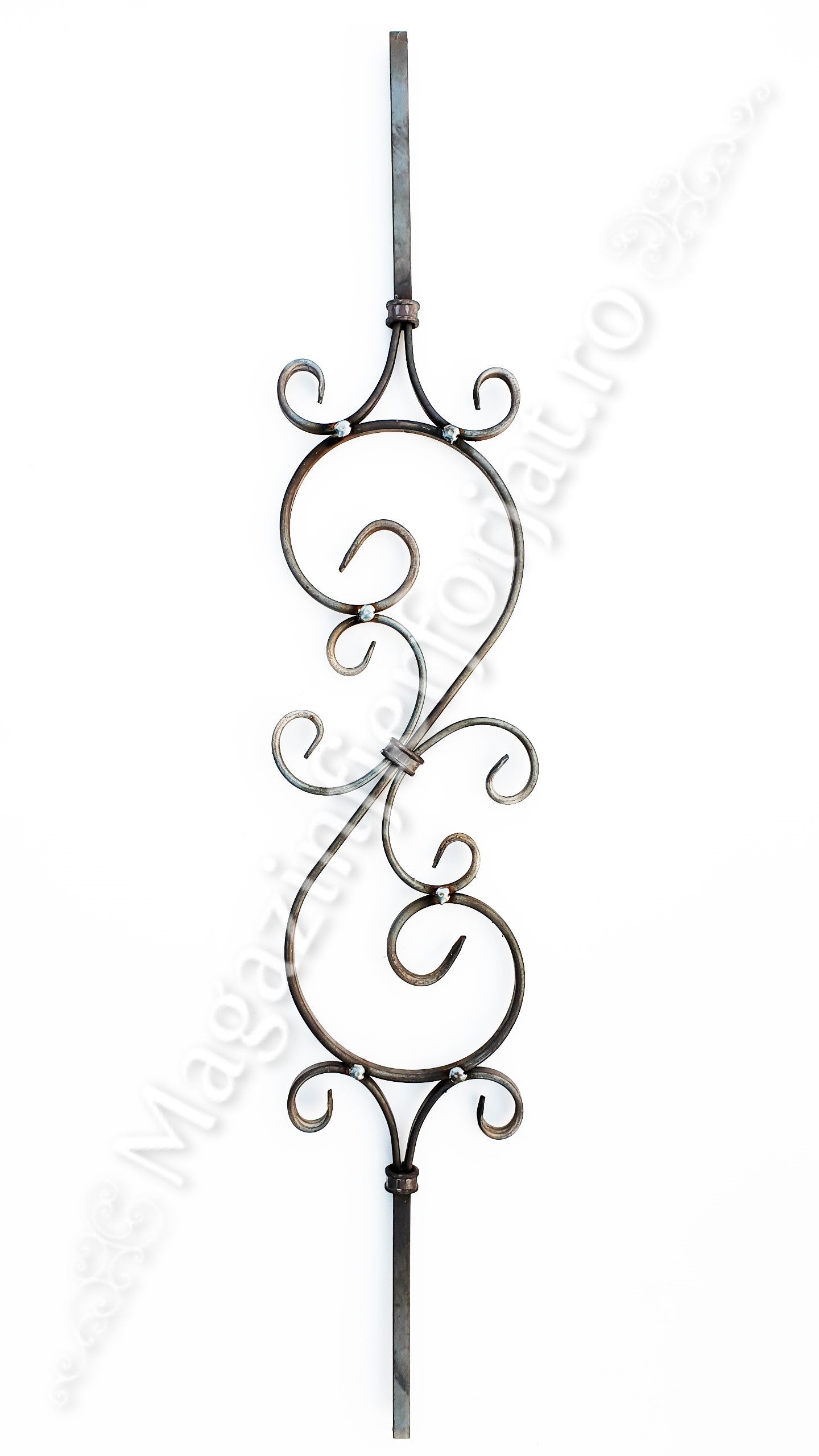 Balustru din fier forjat in forma de S cu C-uri H.900mm L.150mm, cu coliere de mascare sudura, utilizat la balustrada sau la porti si garduri, produs lucrat deosebit si unic marca UNIVERTIS.