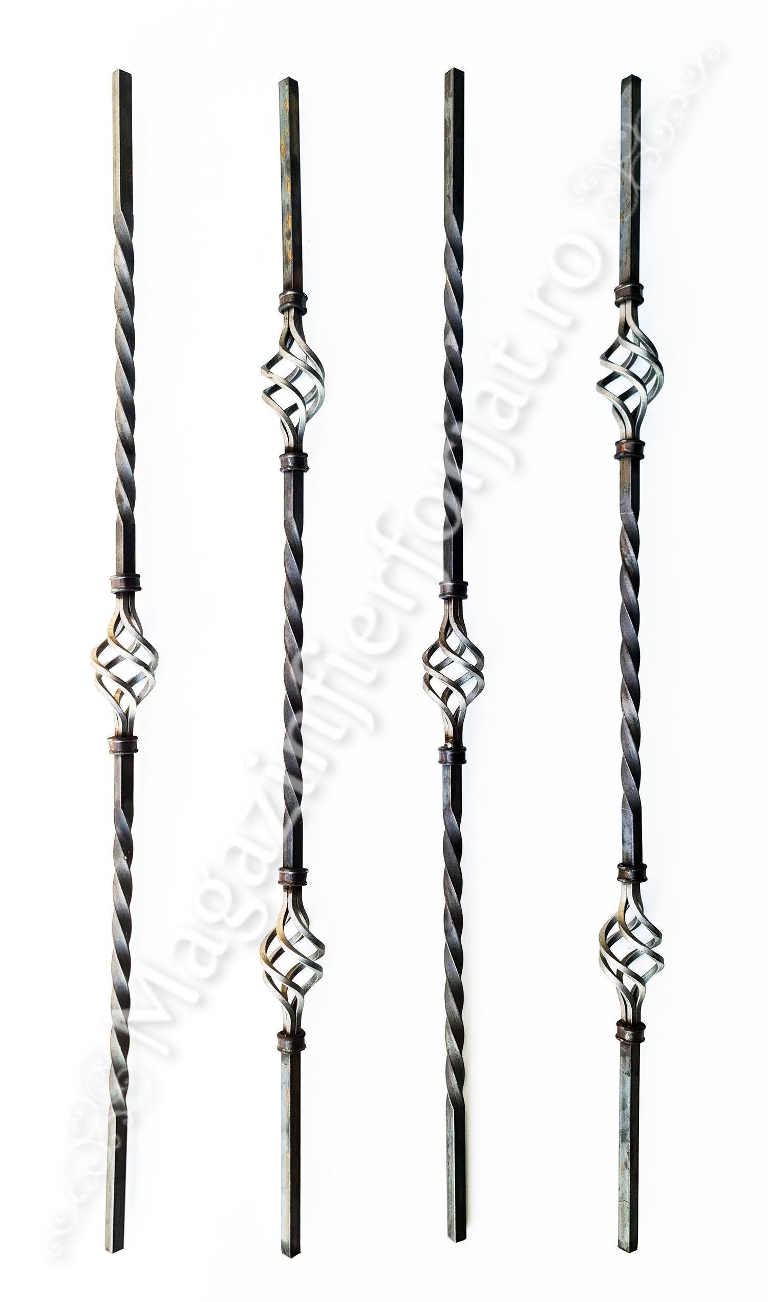 UNV70.24 Balustru vertical, din fier de 12x12mm rasucit, H.900mm, cu 1 cosulet si coliere de mascare sudura