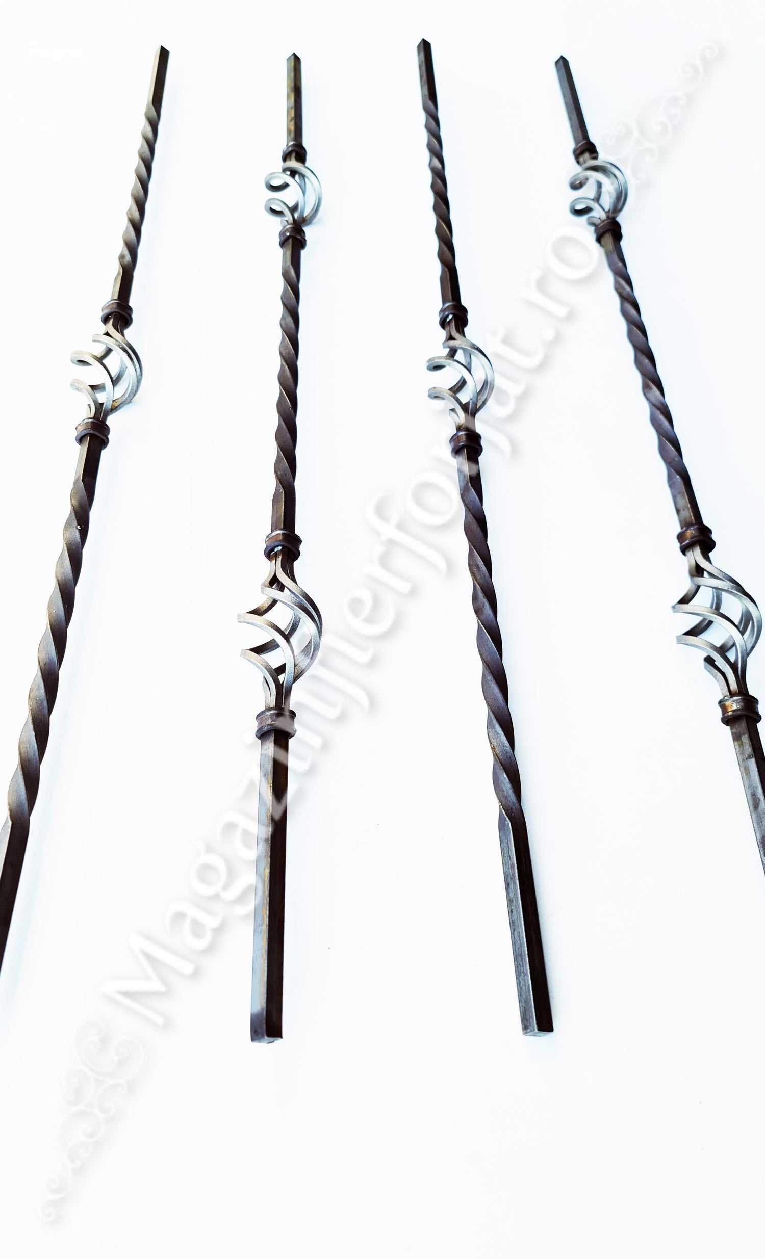 Balustru vertical, din fier de 12x12mm rasucit, H.900mm, cu 1 cosulet si coliere de mascare sudura, un produs lucrat deosebit marca UNIVERTIS