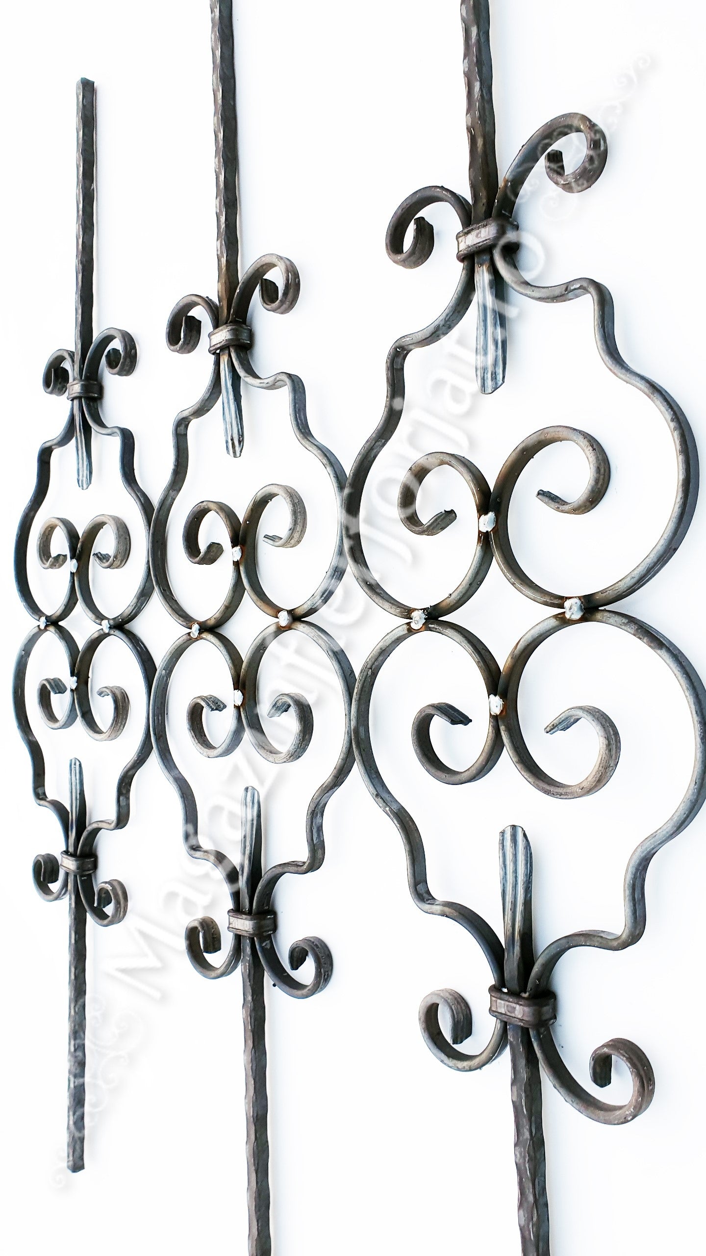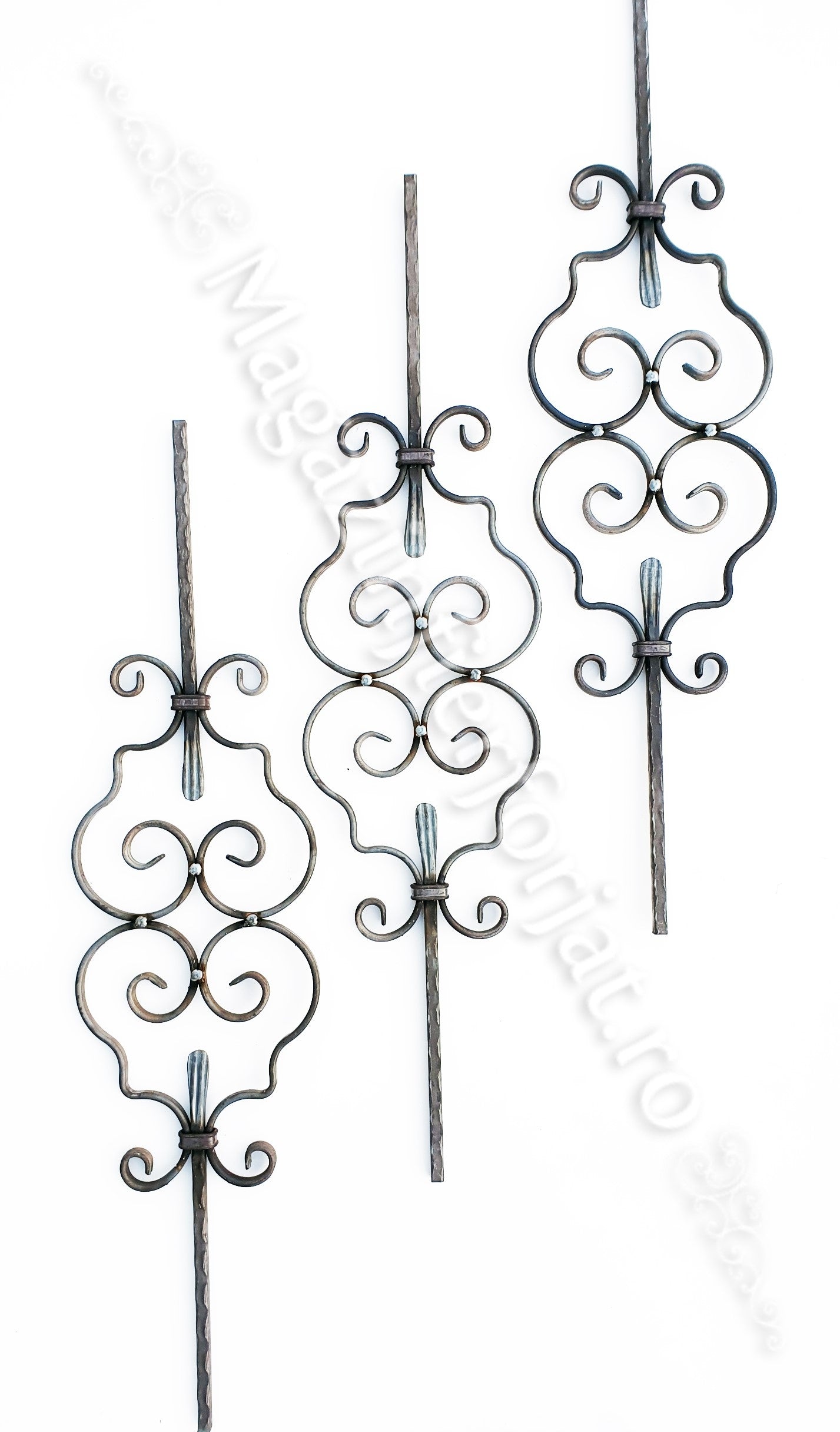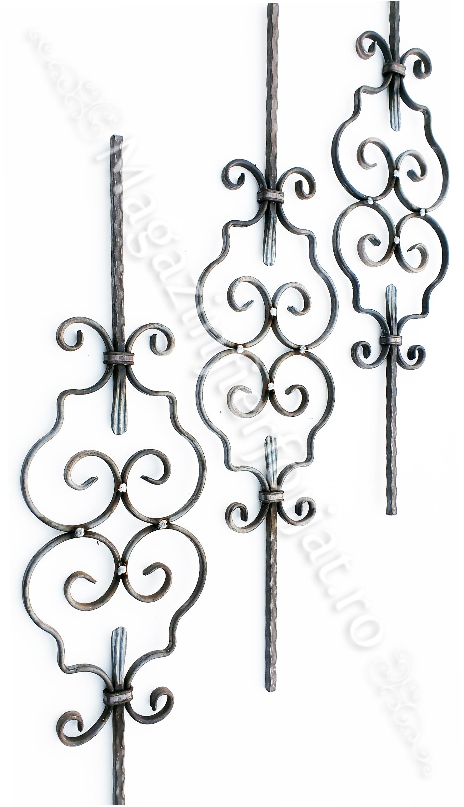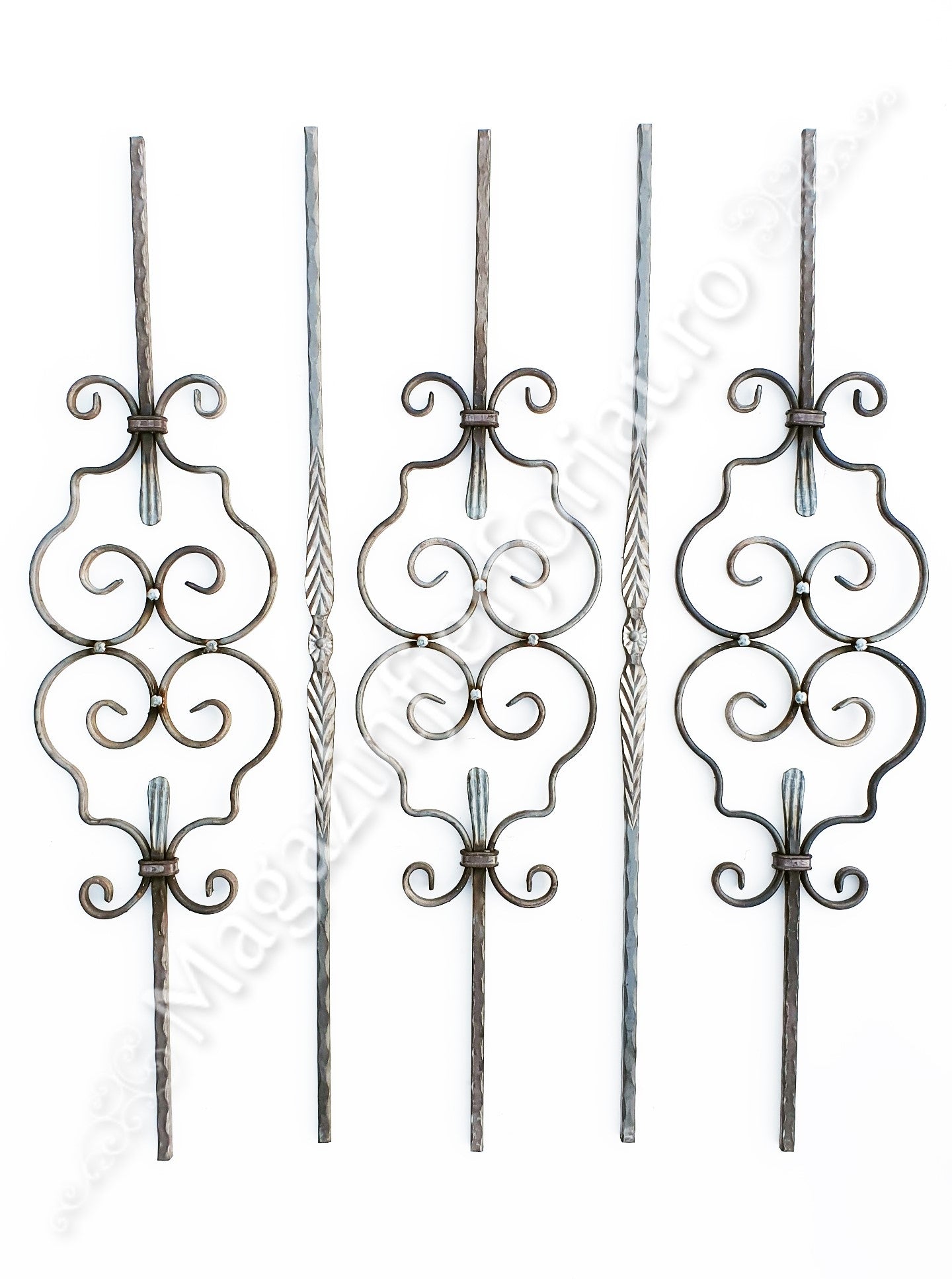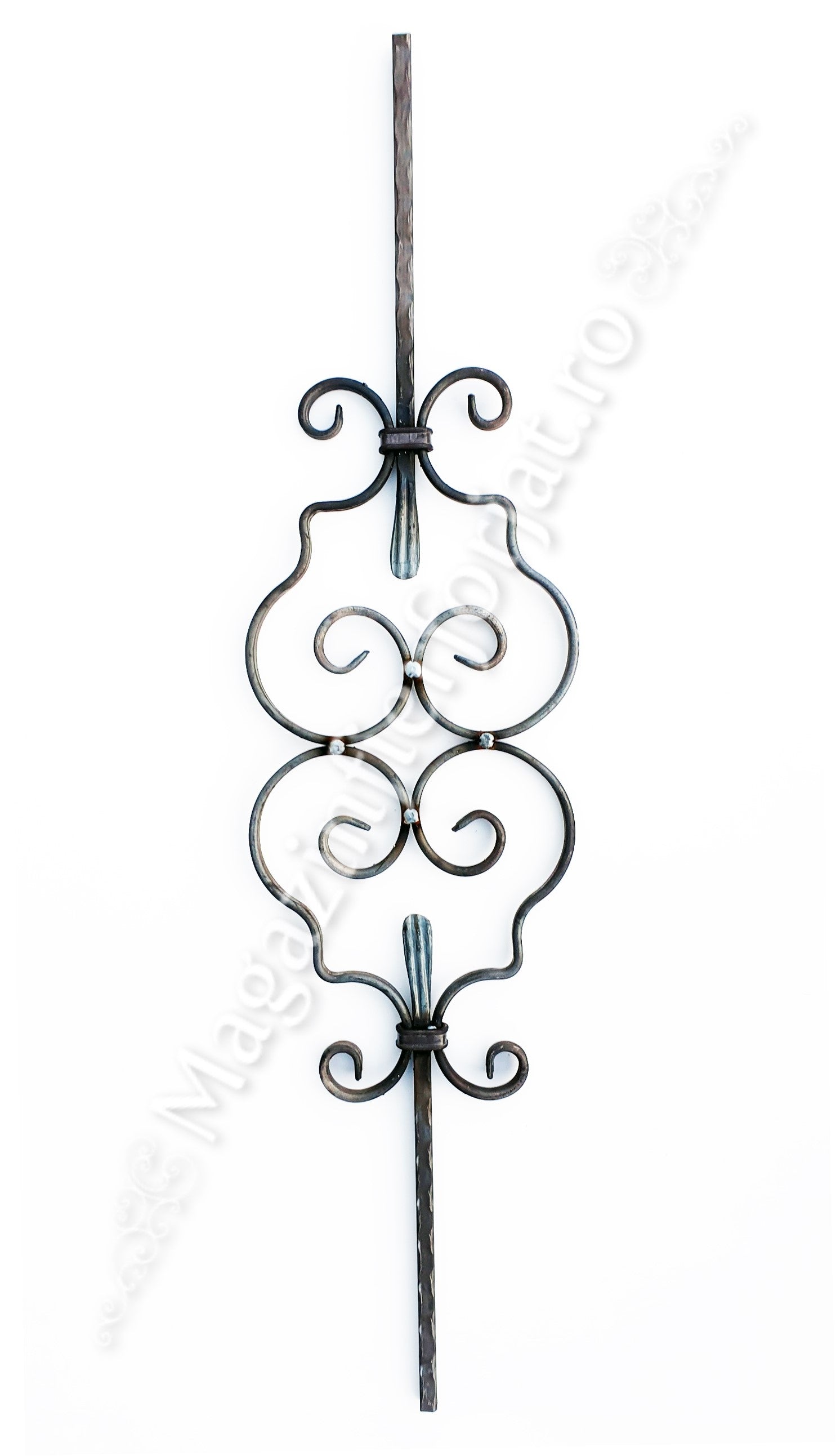 Balustru din fier forjat cu 4 S-uri H.900mm L.225mm, din platband neted 12x6 cu capetele forjate si otel patrat plin 12x12mm amprentat, produs unic marca UNIVERTIS.