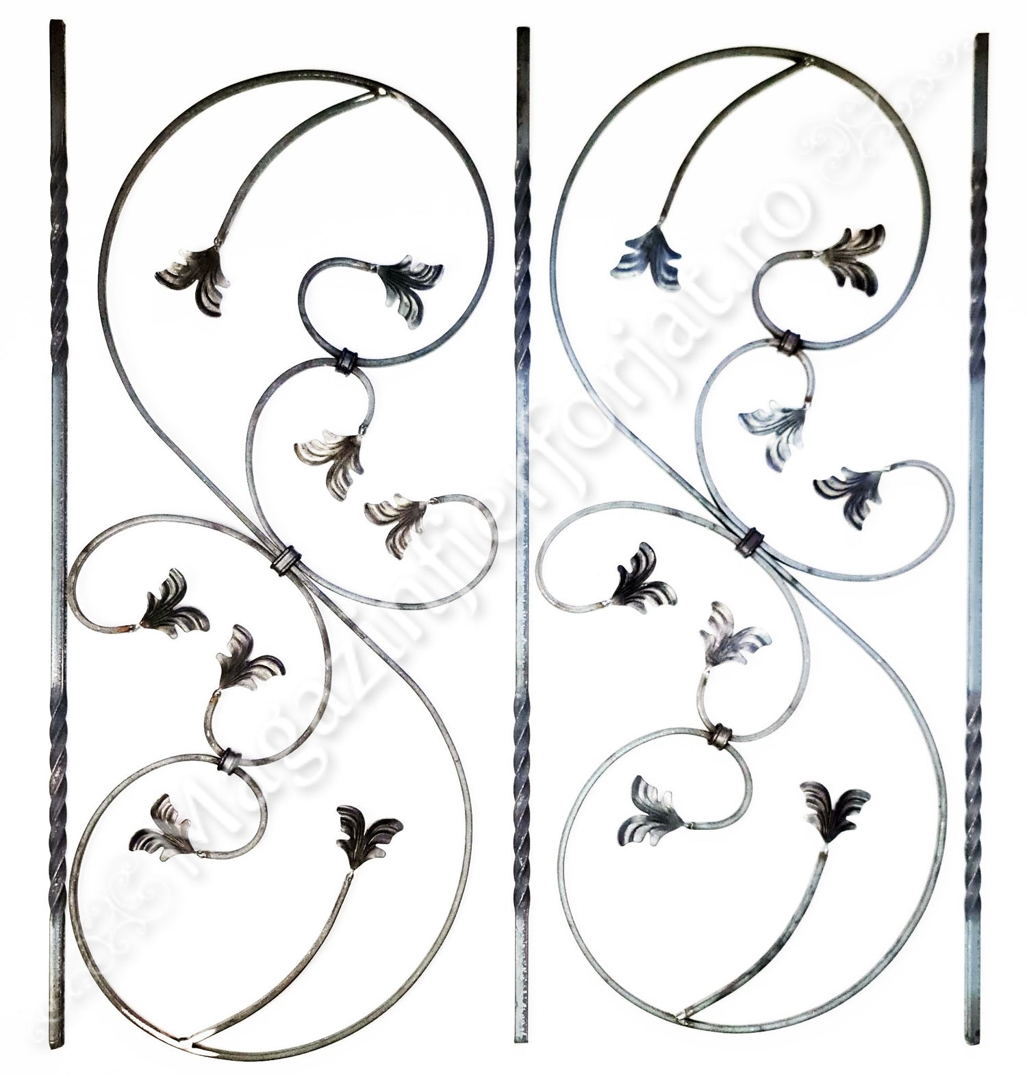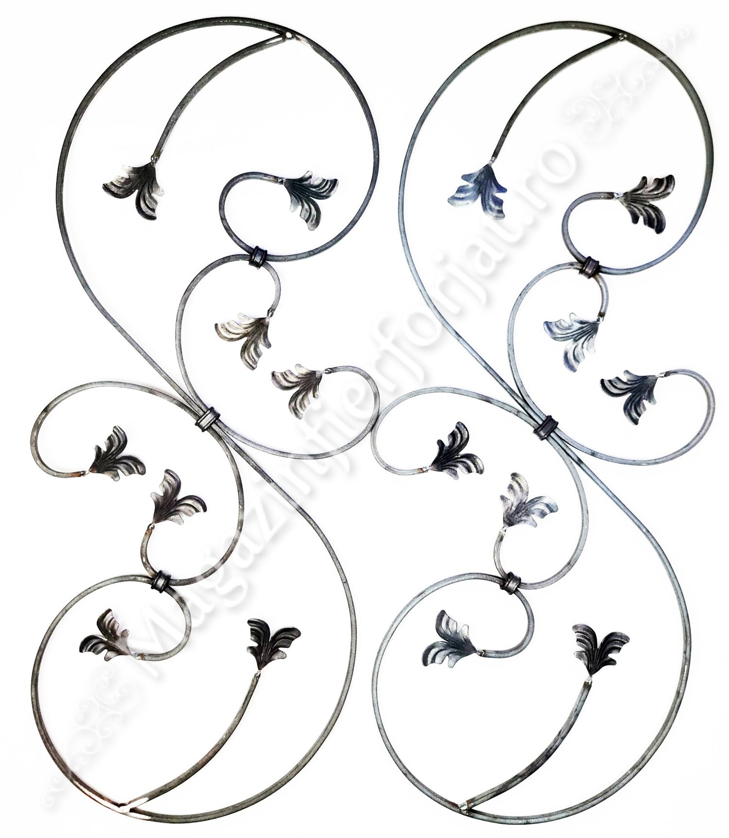 Panou cu 8 frunze forjate in forma de "S" 870x350mm din platband de 12x6mm neted si coliere de mascare sudura, produs lucrat deosebit si unic marca UNIVERTIS.