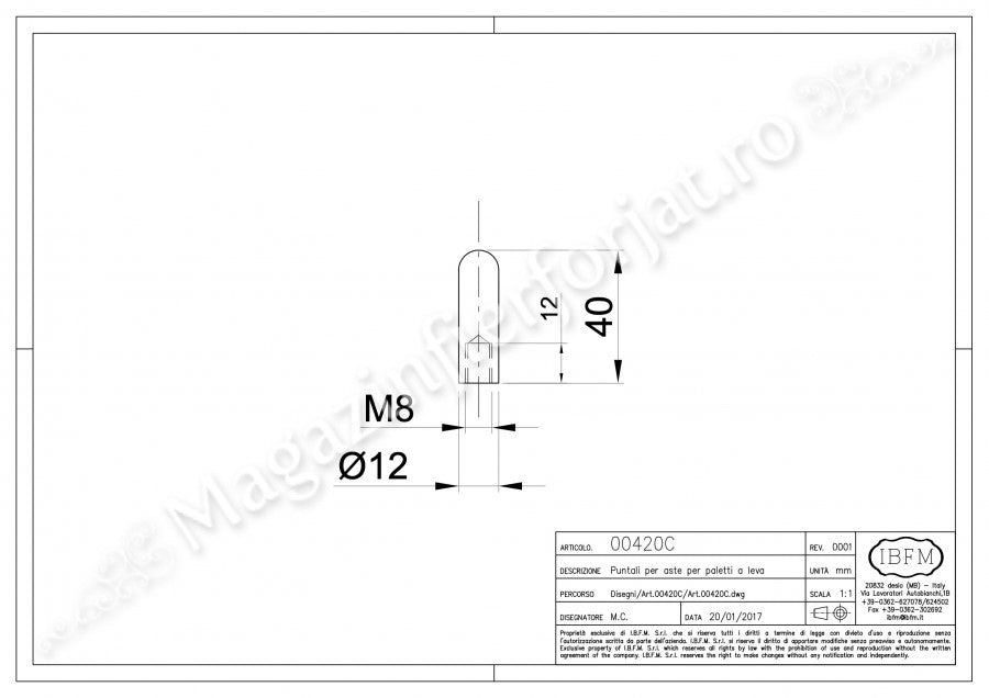 Capac cu filet interior pentru tija filetata M8, utilizat impreuna cu Zavorul ingropat de cant, IBFM Italia
