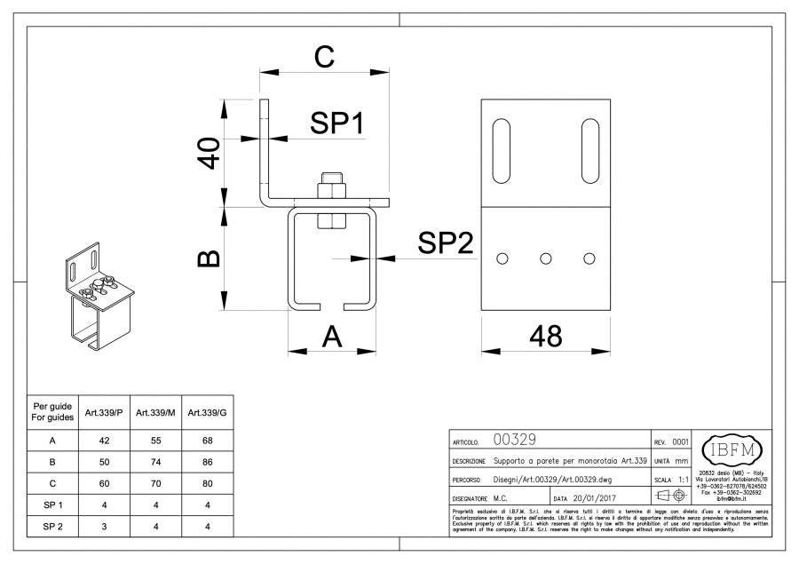 Suport prindere pe perete pentru SINA DE USA / POARTA CULISANTA SUSPENDATA de la IBFM Italia in 3 variante de marime - Compatibil cu sina 339P/6 este la precomandă și va fi disponibil de îndată ce revine în stoc.