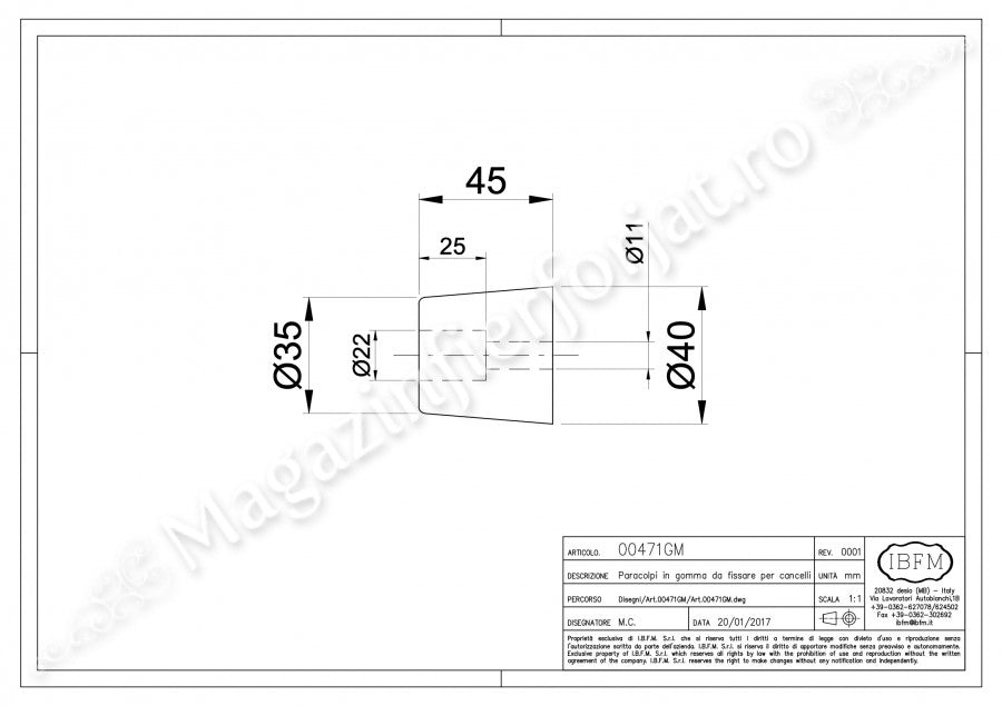 Tampon de cauciuc dur pentru portile grele H.40mm D.45mm de la IBFM Italia