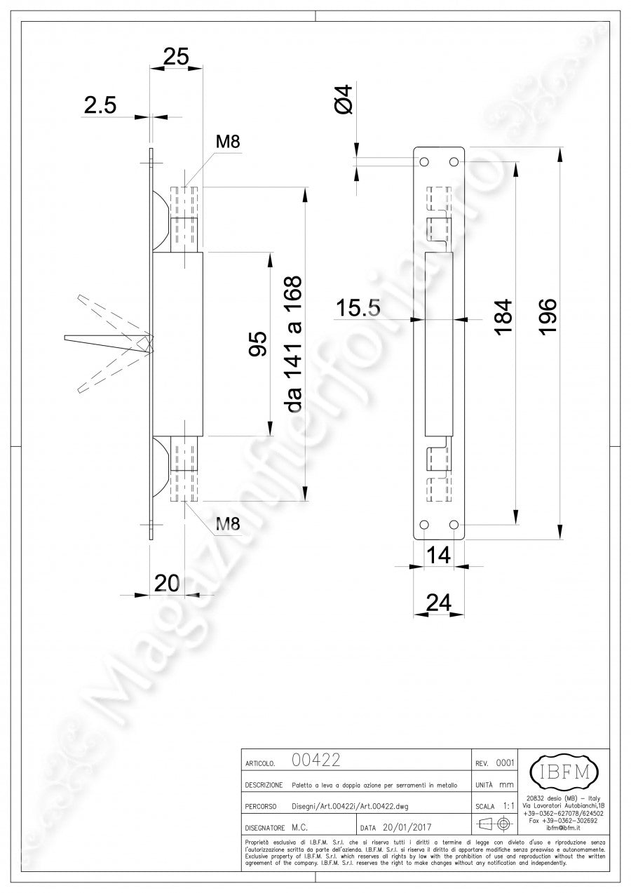 Zavor ingropat de cant H.196mm cu ACTIONARE DUBLA si inchidere pe tija filetata M8, pentru usi metalice, gratii, geamuri, IBFM Italia