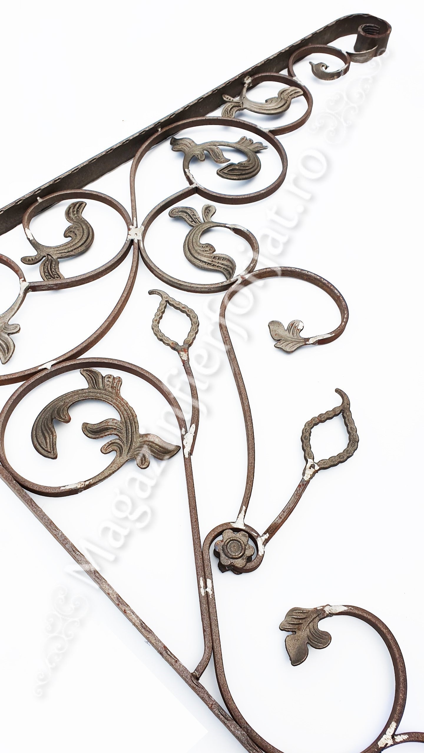 COLTAR ornamental cu model floral din fier forjat 1200x1100mm, cu unghiul de 90 grade, ideal pentru Copertine, Foisoare, Pergole, Marchize din fier forjat.