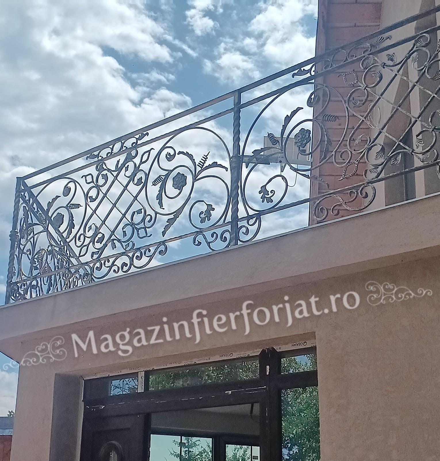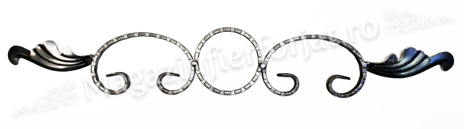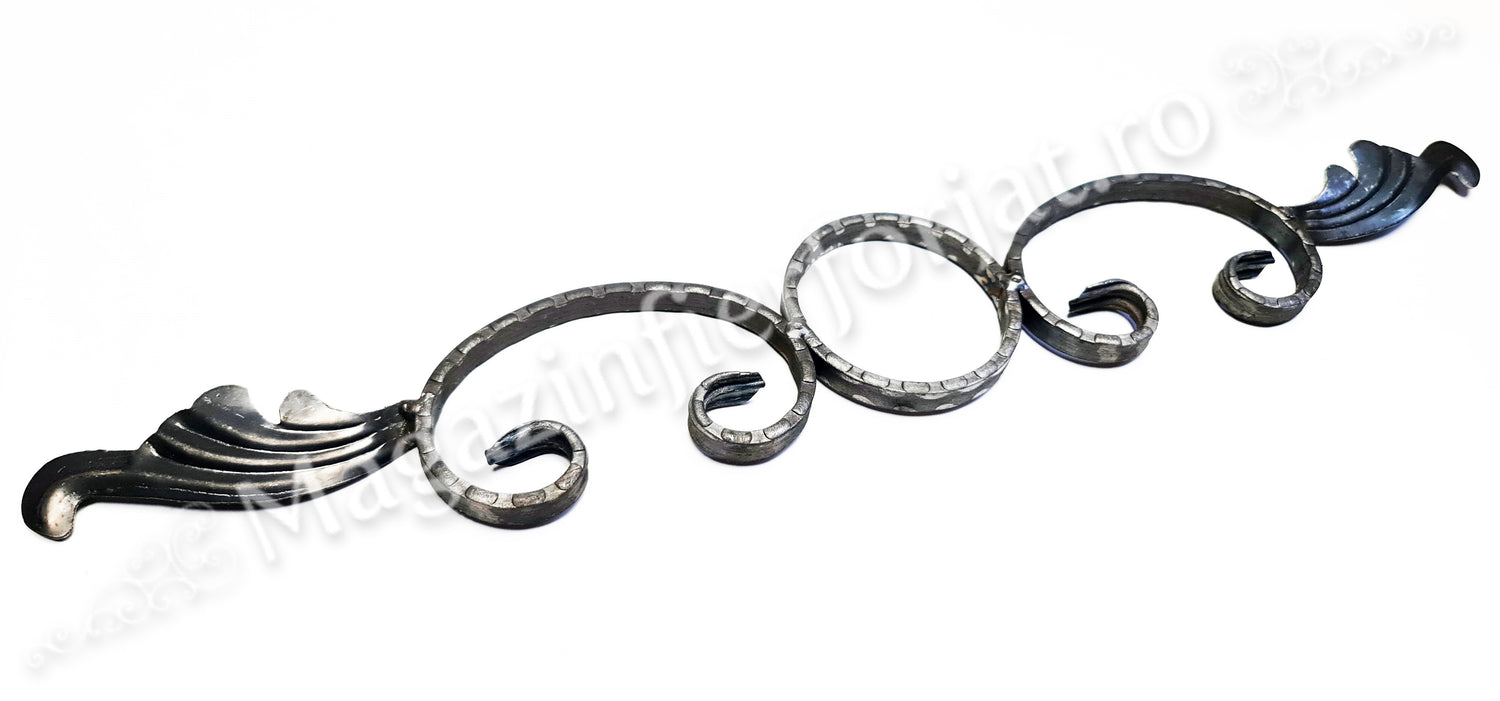 Ornament Ansamblu Cerc + 2 C-uri cu 2 frunze L.575mm H.90mm din otel amprentat pe cant 12x5mm, produs lucrat deosebit si unic marca UNIVERTIS.