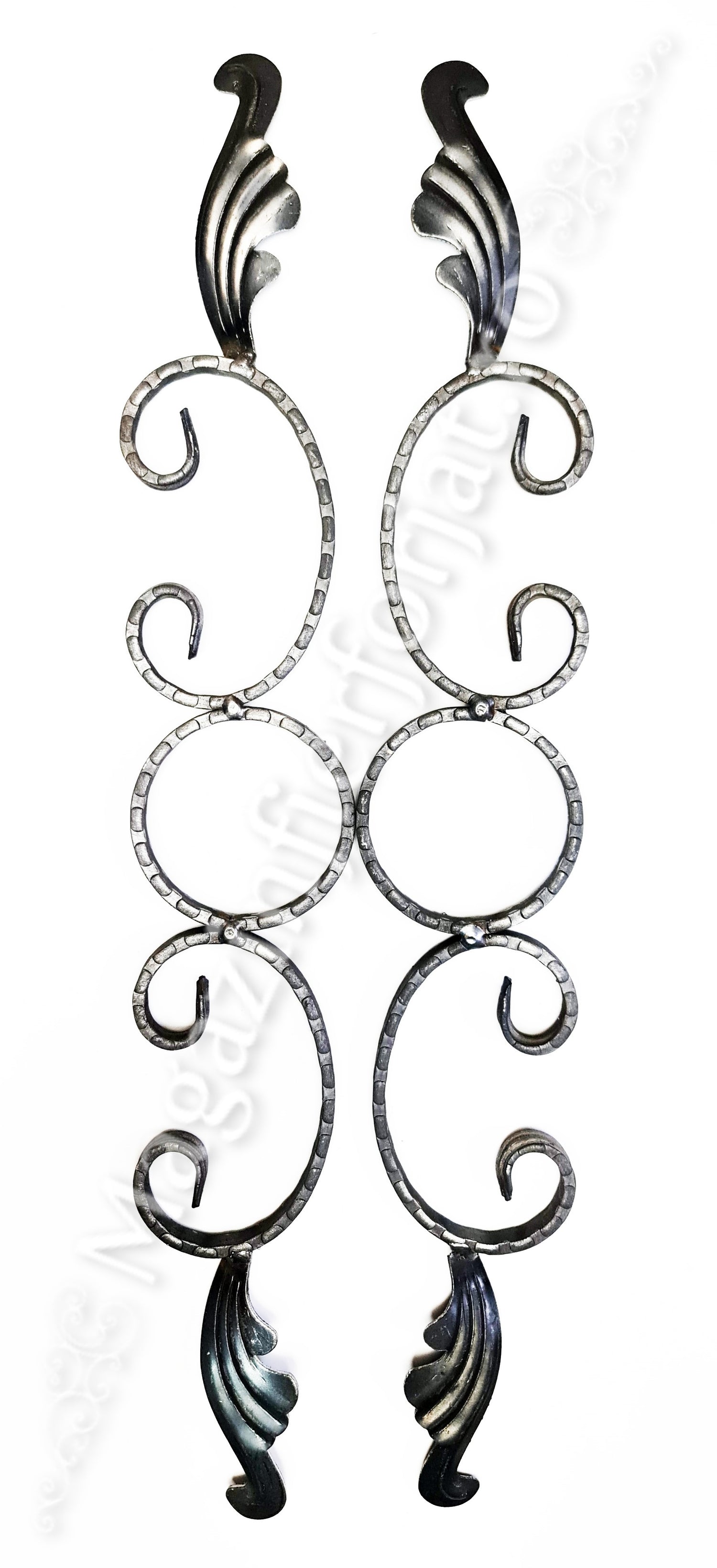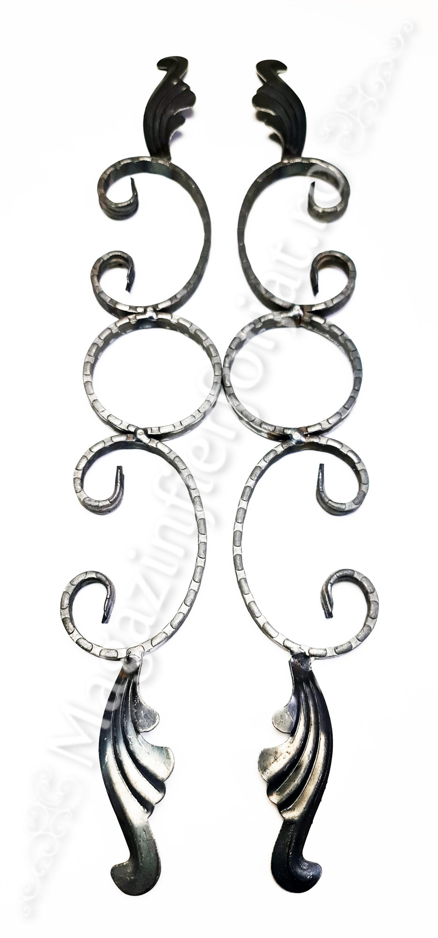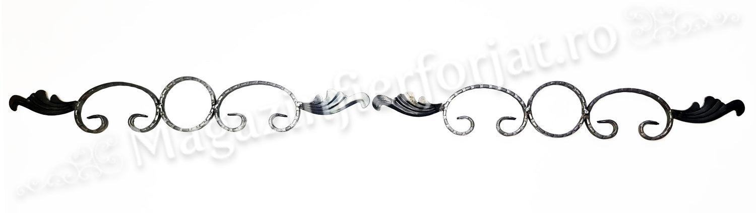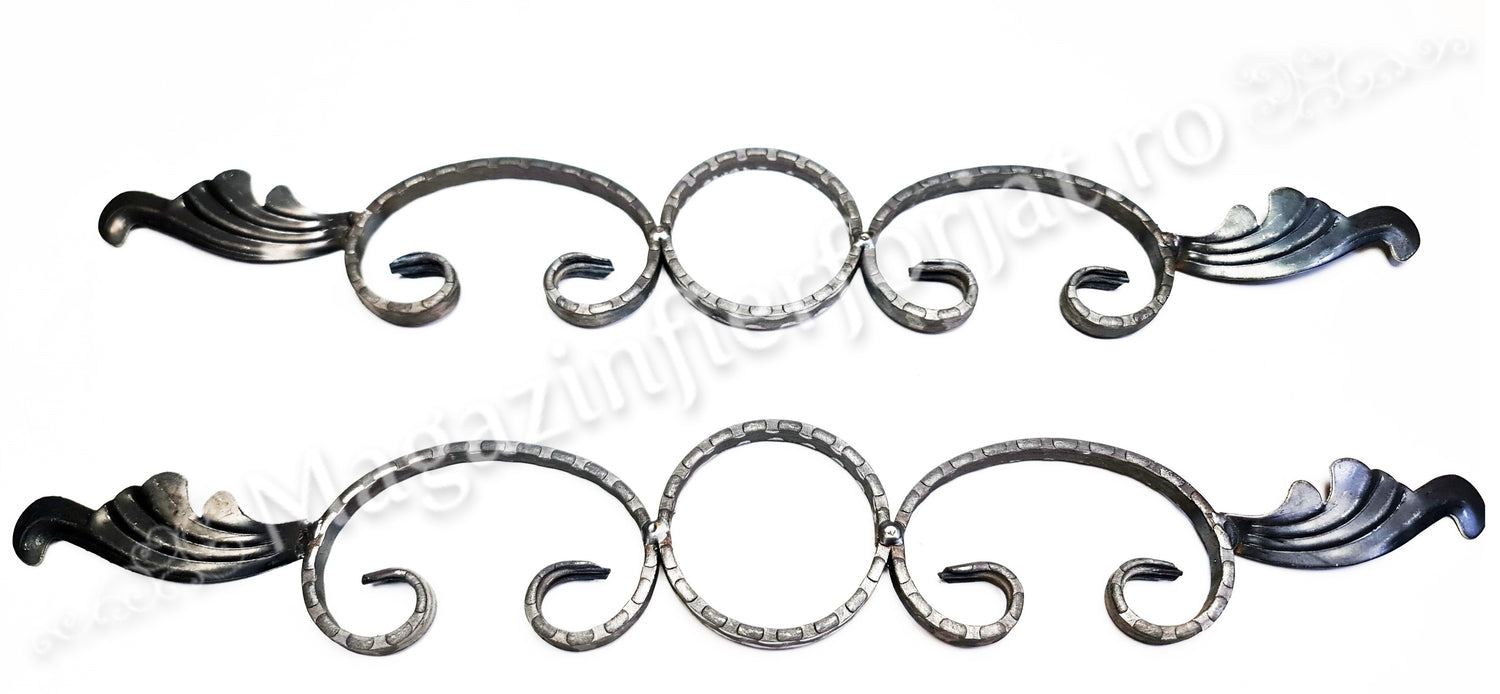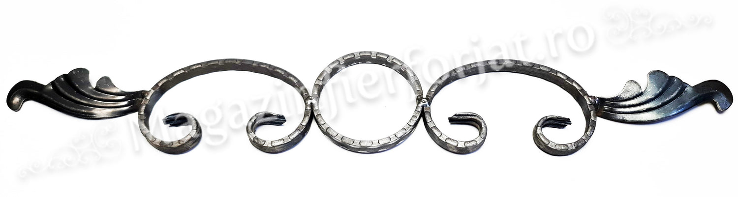 UNV40.22 Ornament Ansamblu Cerc + 2 C-uri cu 2 frunze L.575mm H.90mm din otel amprentat pe cant 12x5mm